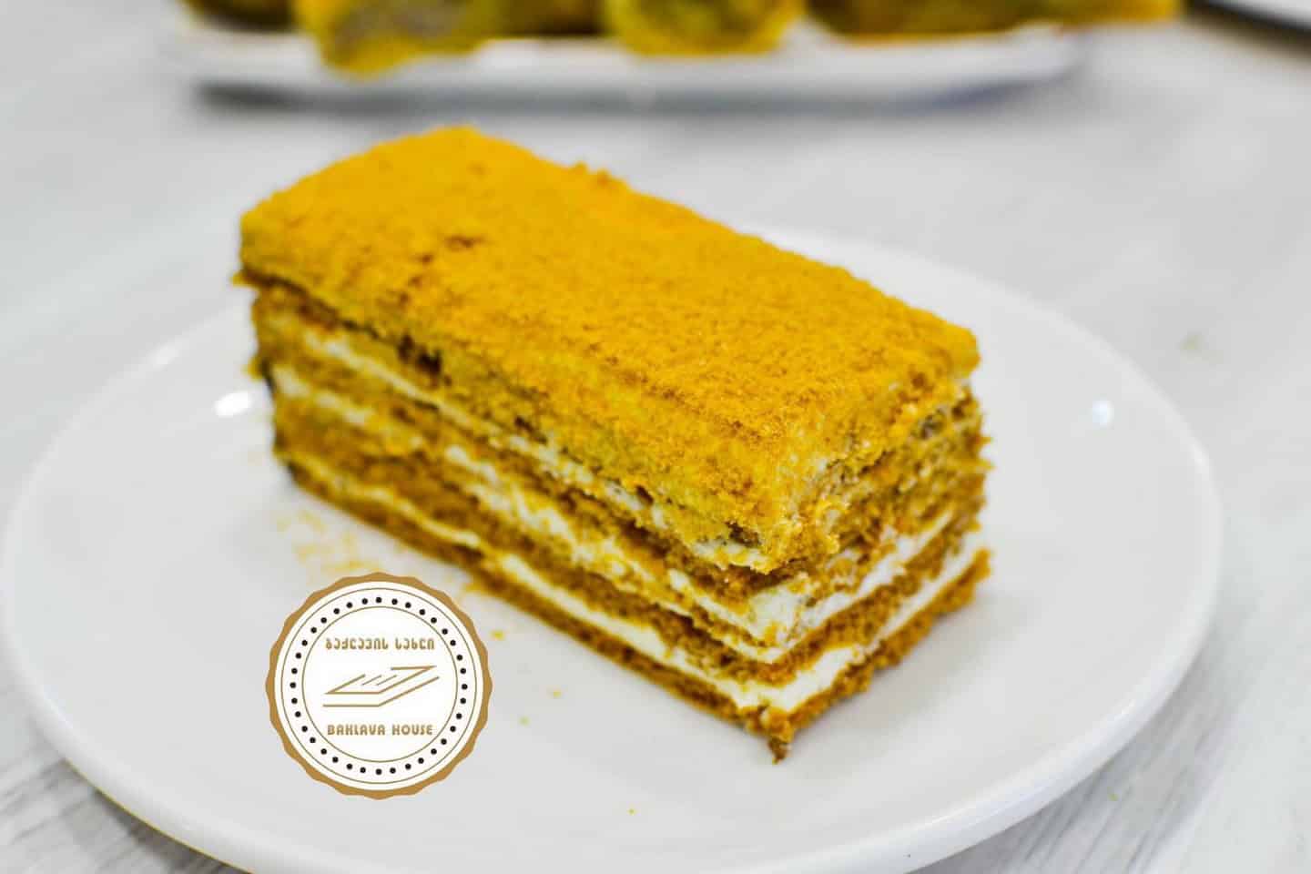 Кроме этого, здесь делают оригинальную аджарскую халву из рисовой муки и слоеную армянскую каду, пирожное Шу, эклеры, корзиночки, медовики и бисквитные тортики, которые продуются по кусочкам.