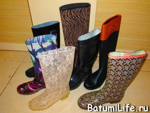 Вы нигде не увидите такого разнообразия резиновых сапог и зонтиков как в Батуми.Тут на эти вещи большой спрос, у кого красивее тот и моднее. В эти дни все кафешки забиты компаниями, которые не только выпивают, но и играют в пантомиму, настольные игры, поют и танцуют.